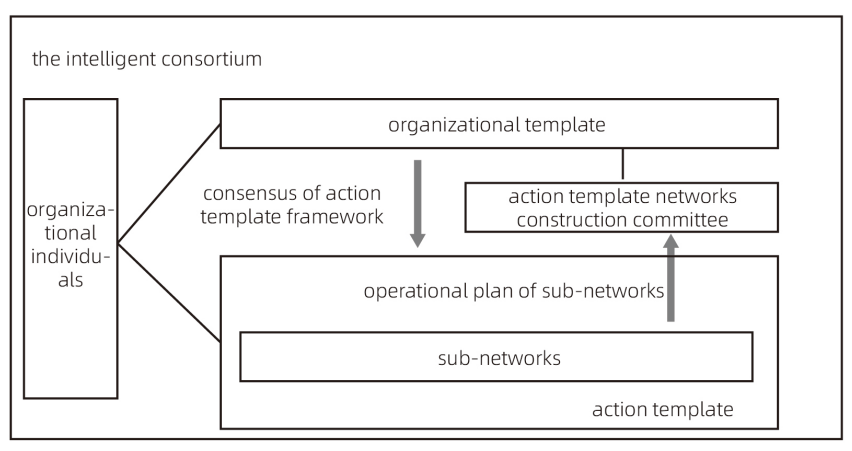 The consensus output from the organizational template should include an action template networks construction committee. This committee’s responsibility is to evaluate the network structure plans, consensus-building mechanisms, and other organizational matters related to the construction of sub-networks in the action template. The members of the action template networks construction committee are determined through the consensus-building mechanism of the organizational template’s organizational network, and the consensus must be reconfirmed by the organizational template network at regular intervals.